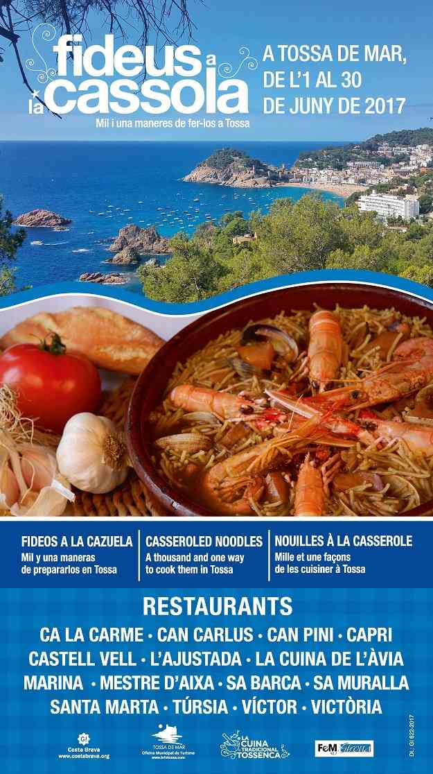 Durant tot el mes de juny, diversos restaurants del col•lectiu que potencia LA CUINA TRADICIONAL TOSSENCA, participen de nou a la campanya gastronòmica, iniciada ara fa cinc anys, posant a l’abast de totes les persones que ens visiten un plat que des de sempre ha estat present a les nostres llars. Es tracta dels FIDEUS A LA CASSOLA.