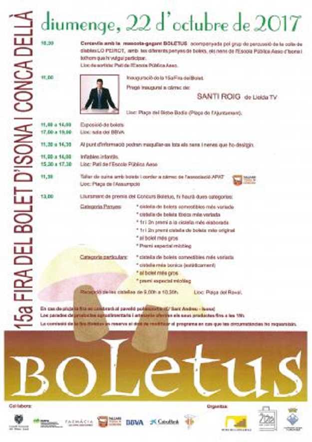 Fira dedicada al recurs natural del bolet i els seus derivats. Mostra gastronòmica i exposició-concurs de bolets. Mostra d’artesania.