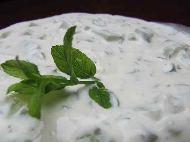 - Posarem el cogombre al bol junt amb al iogurt i un gra d’all picat ben petitl. Barregem bé i afegim oli d’oliva verge i pebre negre al gust. Es pot decorar amb menta o amb olives negres.