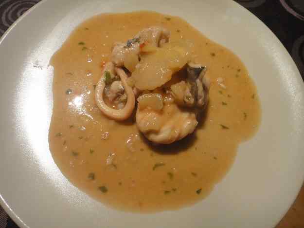 Va quedar força bo, però la salsa era massa aigualida…el fet que les patates se´m desfessin quasi totalment va contribuir, però, a que quedés millor…malgrat que llavors quasi no vam poder gaudir de les patates, que acostumen a ser una de les millor coses dels suquets. Suposo que no vaig utilitzar la varietat adequada per a aquest plat (mona lisa, la que tenia a casa…) i que a més no ho vaig fer seguit…vaja, que abans de tirar-hi el peix el guisat va estar reposant massa estona (per motius…es igual, que no podia acabar el plat en aquell moment).