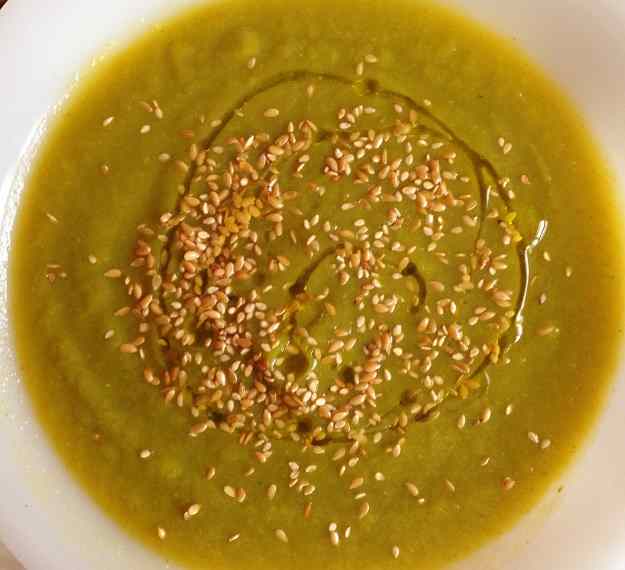 La poso en un plat i per a presentar-la li afegeixo un rajolí d’oli d’oliva verge i llavors de lli i sèsam. Al Ferran li encanta menjar-se les cremes amb formatge ratllat per sobre.