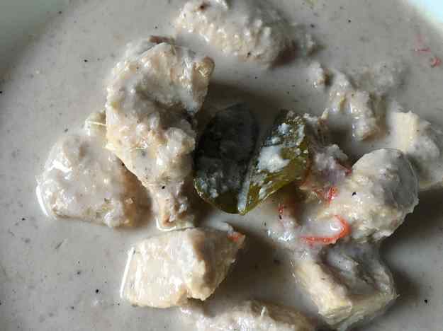 Primer hem de fer una pasta, que posteriorment sofregirem, per finalment coure amb el pollastre i la llet de coco. Per tant, posarem en un pot per triturar l´herba llimona, els xilis, les anous, les xalotes i la pasta de gambes. Sofregim aquesta pasta juntament amb les fulles de llima-kefir i un dels dos talls d´herba llimona. Uns minuts més tard afegim el pollastre, salpebrat i tallat a daus, i quan hagi agafat coloret ho mullem amb la llet de coco. Deu minuts i llestos, o fins que la carn del pollastre estigui cuita i toveta. Jo recomano fer una mica d´arròs basmati integral per acompanyar-ho. I està boooníssim!!!