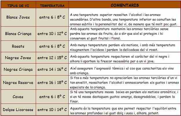 Servir un vi a una temperatura no adequada en pot fer variar molt la percepció, i fins i tot espatllar-lo. S’han dit moltes coses sobre aquest tema, algunes més encertades que d’altres. Mirem d’aclarir-ho i ordenar-ho de manera senzilla i pràctica.