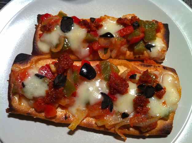 Quan les coques ja están refredades hi posem el trempó a sobre i el formatge de maó i la sobrassada a petits trossets mentre posem el gratinador del forn en marxa. Posem les coques al forn un moment, just per desfer el formatge i torrar una mica la sobrassada i llestos, una coca deliciosa!.