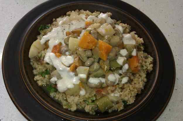 Per exemple, ahir per sopar vam fer sopa de ceba i en va sobrar un culet. Al migdia, havíem fet llenties estofades i búlgur bullit per acompanyar les llenties.