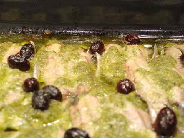 - Primer de tot, poseu les sardines, obertes, en una safata per anar al forn.
