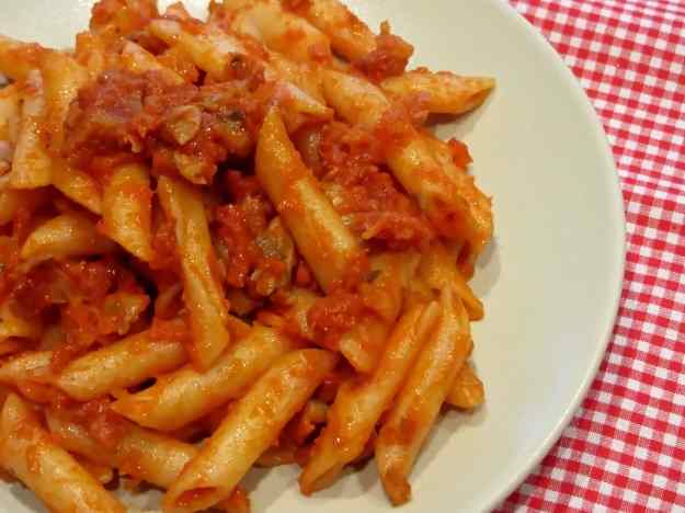 - Un cop la salsa estigui preparada (ja sabeu que la salsa sempre espera la pasta i no al revés!), bullir els macarrons, escorre’ls i barrejar-los amb el sofregit.