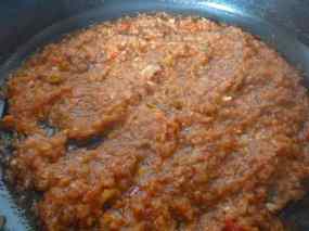- Una vegada ben transparent la ceba afegim el pebrot vermell picant i seguidament el tomàquet rallat.