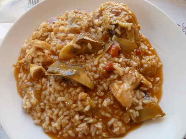 - Deixem fer fins que quedi com una melmelada. Es el moment de afegir les carns i les carxofes, les barregem amb el sofregit i deixem fer uns 15 minuts, si veiem que queda massa sec afegim una mica de caldo.
