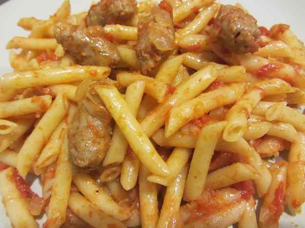 - Afegir les salsitxes i deixar que es daurin una mica. Es poden tallar directament però jo prefereixo treure la pell.