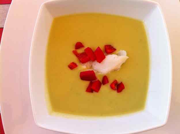 Com sempre: tots els ingredients a la batedora fins que estiguin totalment integrats a la sopa/crema, vaja, de fet desintegrats, ja ja. Es pot colar o no, als qui ho van tastar els hi va agradar sense colar però jo crec que es necessari el seu pas pel xinès. I per acompanyar-ho, a més a més del pebrot vermell tallat petit i dels trossets de bacallà esqueixat jo hi afegiria, de fet vam afegir-hi, una mica més de tabasco. De les més bones!