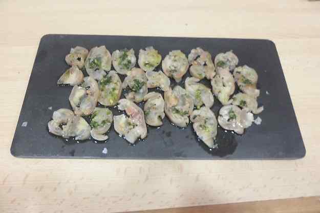 - Ara els tallem a lamines ven fines ,els posem amb un plat