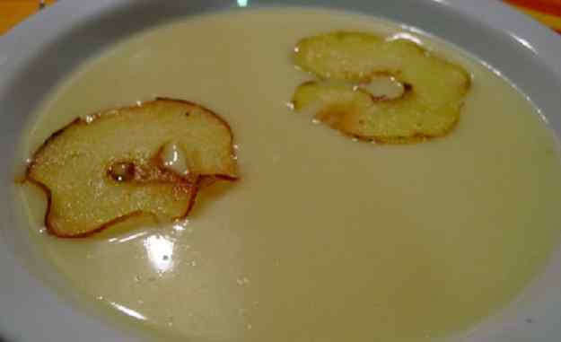 - Jo, per decorar, vaig tallar una làmines de la part central de la poma amb una mandolina i la vaig fregir amb oli de girasol.