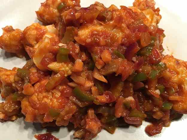 Per fer la salsa, escalfarem oli en una paella i hi anirem afegint tots els ingredients en aquest ordre: primer l´all, el ginger i el xili. Un parell de minuts més tard farem el mateix amb l´api, la ceba i el pebrot, tot ben picat. Cinc minuts i el torn de la salsa de xili, la de soja, el ketchup o tomàquet triturat, el vinage, el pebre blanc, el sucre i l´aigua. Un parell de minuts i ja estarà llest. Cobriu la col-i-flor amb la salsa i llestos, super bo. Pot ser un primer plat i, amb quinoa, cus cus o arròs basmati, un plat únic.