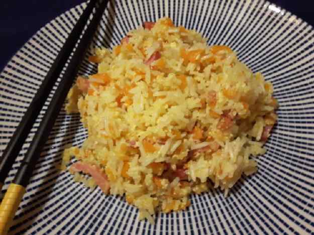 - Un cop cuit l’arròs, l’aboquem al bol, hi incorporem el beicon i remenem suaument perquè tots els ingredients quedin ben barrejats. Si se’n vol afegir algun altre, ara és el moment.