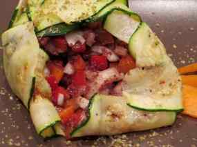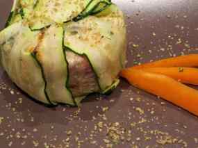 - Utilitzar un aro d’emplatar i col·locar les làmines de carabassó de manera que facin el farcellet.