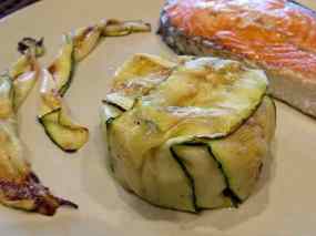 - Tallar el carbassó a làmines molt primes amb una mandolina.