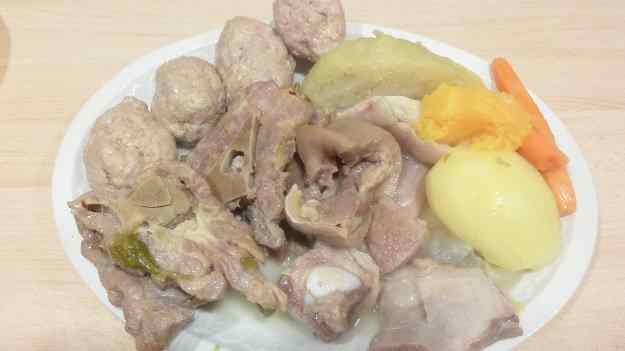 1. Posem una olla gran al foc i afagim tota la carn menys la carn picada, la deixem que bulli una hora mes o menys i quan bulli la podem anar