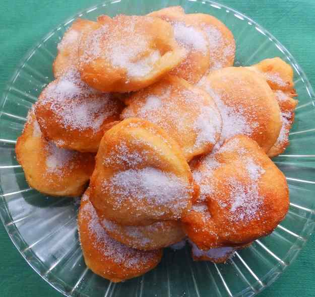 Feu una pasta amb la farina, els rovells d’ou, el llevat, l’anís i la meitat del sucre, ha de tenir consistència, penseu que ha de cobrir els trossos de poma sense regalimar. Deixeu-la reposar 1/2 hora.