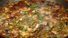 - A banda haureu passat el pernil dolç, talladet a tires, per la paella i batut els ous.
