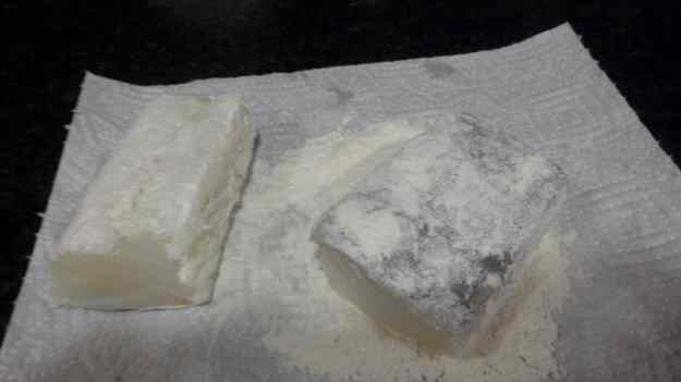 - Ara pasem el bacallà per farina i el posem a la paella i el fregim