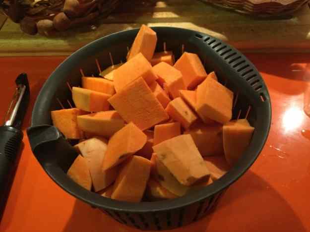 - Col.locar el cistell amb el boniato tallat a dins i programar 20 mins Varoma vel. 1