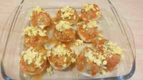 - Un cop la salsa estigui feta la posem per sobre els ous i ratllem els rovells que teniam separats i els enfornem uns 10 minuts a 200º006