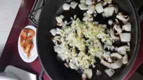 Salsa: es posa oli al wok o en una paella. S’hi posen els alls trinxadets i el gingebre ratllat. Seguidament s’hi afegeixen els pebrots tallats a quadrets, se salta tot uns 3 minuts i s’hi afegeix la pinya a talls petits. S’hi barreja el sucre, el quètxup, el vinagre, la salsa de soja, la sal i la Maizena dissolta en el caldo. S’espera fins que arrenca el bull i que la barreja agafi consistència. Se serveixen els trossets de carn fregida amb la salsa per sobre, just al moment de servir-la.