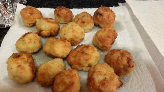 - Posem la resta d’oli a la paella i la posem al foc i afagim les pilotes i les fregim uns 5 minuts que quedin cruxents