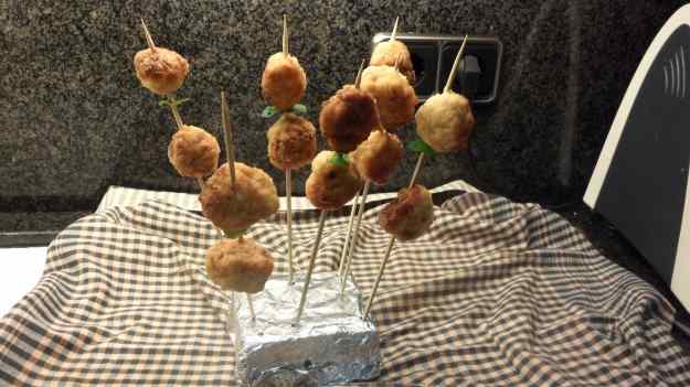 - Ara les enfilem amb pals de pinchos i les podem servir calentes o fredes