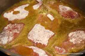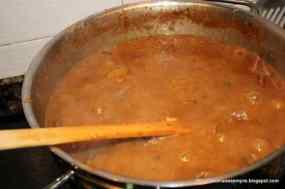 A la olla a pressió poseu un raig d’oli, sofregiu la carbassa tallada a trossos i els alls tendres tallats a rodelles, salpebreu, seguidament afegiu les mongetes escorregudes, poseu-hi una culleradeta de pebre vermell, remeneu i cobriu amb aigua les mongetes, saleu i afegiu els trossos de pernil serrà, tapeu l’olla i deixeu coure dotze minuts, mentrestant coeu els ous per fer-los durs (les cloïsses han d’estar un parell d’hores en aigua i força sal), peleu els ous i reserveu.