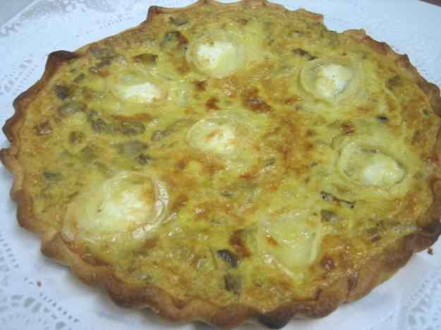 - Posar la mescla al damunt de la massa , i repartir el formatge de cabra a rodanxes per sobre.