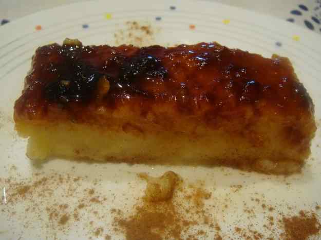 A l’hora de servir-lo, passem una espàtula per les vores del motlle i, amb cura, el voltem sobre una plata. Per les vores aboquem una mica de canella mòlta perquè faça boniquet.