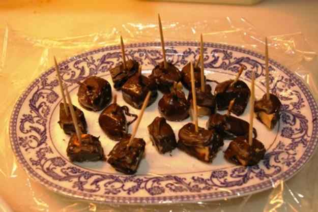 Les he fregit i els hi he tirat sucre per sobre. Les he adornat amb xocolate ( desfeta al microones amb una mica de mantega i un rajolí de l’almívar de coure les peres).