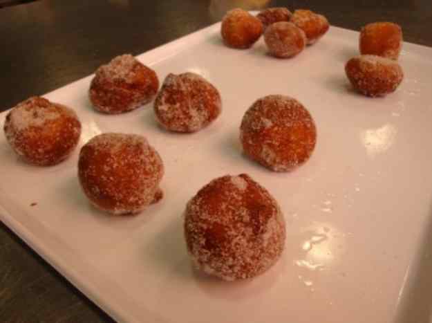 Fem primer la massa. Bullim la llet, la sal, el sucre i la mantega. Quan trenqui el bull, apaguem el foc i hi afegim la farina i remenem amb força perquè no se’ns enganxi. Un cop ben barrejat, ho tornem a posar al foc un parell de minuts. Agafem aquesta massa i la fiquem en un bol i li donem voltes amb un batedor perquè es refredi i fins que deixi de treure vapor. Hi afegim els ous d’un en un. Tot seguit, fiquem la massa en una màniga pastissera i en fem boletes en una safata damunt de paper sulfuritzat. Ho fiquem al congelador un moment perquè es refredi una mica. Ara ja podem fregir els bunyols, a 180 graus. Seguidament, els ruixem (amb un vaporitzador com de les plantes va de conya) amb una mica d’anís i els arrebossem amb sucre.