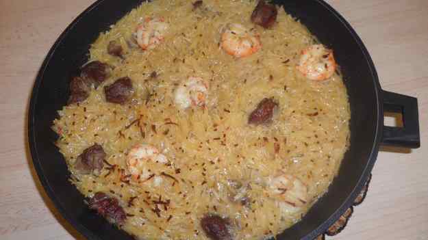 - Afagim els fideus ,el fumet, els llagostins i la sal, progremem 10 minuts 100º gir esquerra vel.cullera
