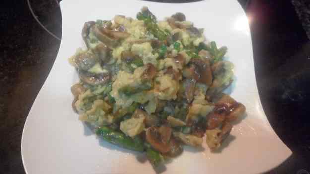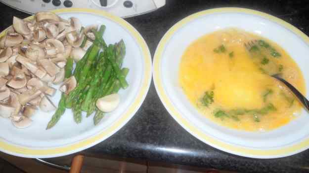 - Mentres batem els ous amb un bol junt amb el julivert i sal, un cop batut afagim a la paella , abaixem el foc i remanem fins que els ous cuallin