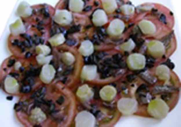 - Posar a sobre de cada rodanxa de tomàquet una miqueta de les olives, les anxoves i els espàrrecs.