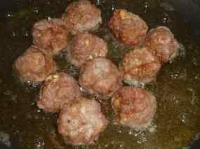 - Mentre es va fent la salsa, comencem a fer les mandonguilles. Posem les dos carns en un bol, posem sal i pebre (si han de menjar nens no posarem pebre), els dos ous sencers, els alls (si son nens petits podem eliminar l’all), el julivert i les llesques de pa (que haurem tingut en remull amb la llet) les escorrem amb les mans i les afegim al bol. Ho barregem be tot i anem agafant petites boles de carn, les anem passant per farina i les fregim en una paella amb oli.