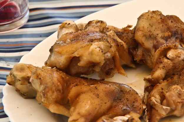 - Bullir, amb aigua, Sal i una fulla de llorer, els peus a l’olla a pressió (1h. 30’aprox). Una vegada cuits els posem en una safata, els pintem amb l’oli macerat (Oli amb uns grans de pebre negre, uns bitxos, una fulla de llorer, all – o el que es vulgui -, i temps dins una botella) i els deixem reposar una nit.