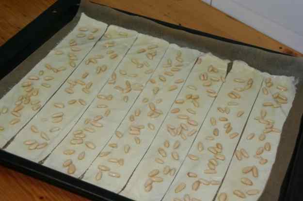 - Posem paper de forn a la plata i avoquem la barreja i l’estenem que ens quedi un grux de un cm, enfornem uns 12 minuts a 180º