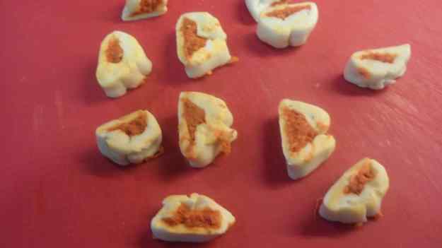 - En una meitat hi posem sobrassada i la dobleguem fent dos dobles fins al centre i fem el maitex per l’altre costat, la posem una estona al congelador perque es pugui tallar millor