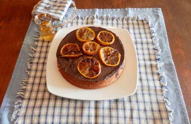 Quan tenim el pastís ja fet, posem una rajola de xocolata per desfer al bany maria amb una mica de crema de llet o mantega (així evitem que quan es refredi s’endureixi i no la puguem tallar). Un cop fred el pastís i desemmotllat, el cobrim amb xocolata i el guarnim amb la taronja confitada.