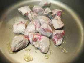 - Abans d’afegir a la paella la verdura hi farem la carn. No massa feta. En aquesta foto encara li faltaven unes voltes.