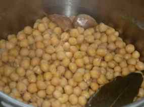 1. El primer pas es bullir els cigrons (clicar aquí per veure com fer-ho). Una vegada bullits els colem i reservem un got de l’aigua de bullir-los.