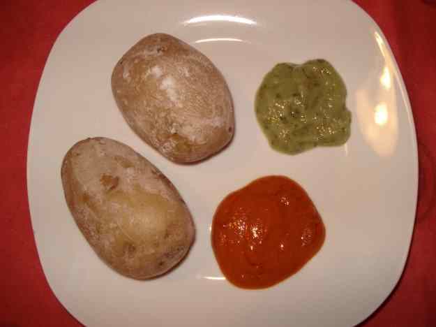 Primer de tot rentarem bé les patates. La gràcia és menjar-se-les amb pell, així que han de quedar ben netes! Després posem a bullir les patates en una olla amb la sal gruixuda i esperem uns 10 minuts a que siguin cuites (comprovarem que ho estan punxant-les).