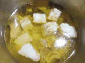- En un cassó posem a bullir al foc el caldo de verdures.