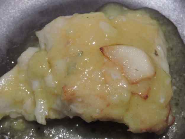 - Quan la salsa pil pil ja esta feta, posem a la cassola els trossos de bacallà amb compte perquè no es trenquin, deixem un 2 minuts i apaguem el foc.