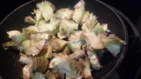 - Escalivem les albergínies i les tallem per la meitat, traiem la polpa amb cura de no trencar la pell, que també reservarem.
