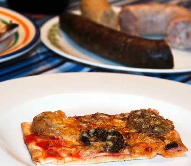 - Fem el mateix amb les botifarres, tallades en forma de discs, i finalment escampem el formatge ratllat i enfornem